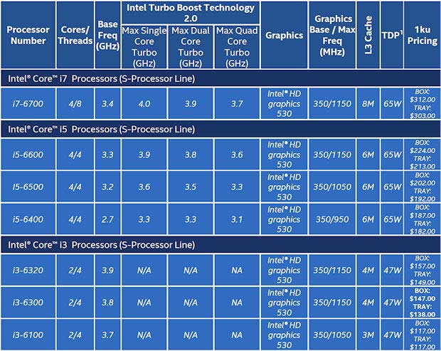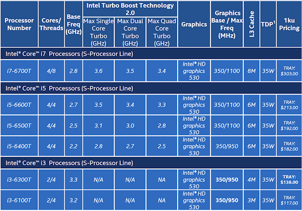 Данные получены напрямую от Intel, но делится ими сайт TechReport. На первом слайде мы видим решения серий Core i3-i7 с TDP от 47 до 65 ватт:
