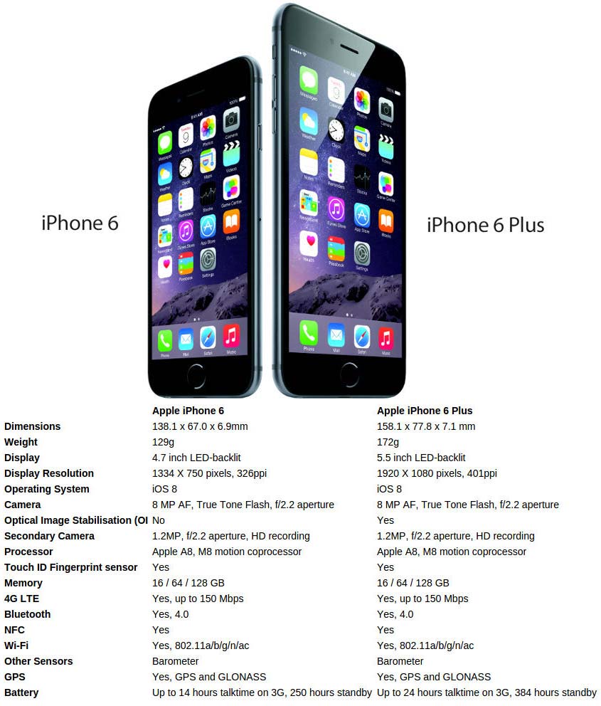 Все общие черты и отличия между двумя iPhone 6 представлены в графическом файле ниже. Пусть он и на английском языке, понять нужное не составит труда любому, кто умеет читать в принципе: