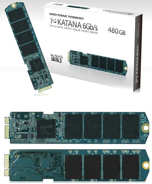 Низкопрофильное SATA подключение используется у ультрабуках и нетбуках, так что для таких вот устройств (а заодно и для MacBook Air 2010 и 2011) новинка и предназначена. Предлагаю ознакомиться с характеристиками нового накопителя MX-KATANA: