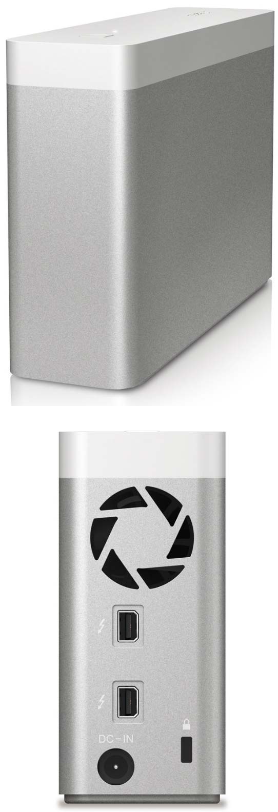 Размеры новинок составляют 154x102x45мм, вес девайсов равен 540 граммам. Охлаждение накопителей внутри продукта Buffalo активное, что довольно странно, т.к. SSD особо в нём не нуждаются, пусть их и двое в связке. Коннекторов Thunderbolt у изделий серии два.