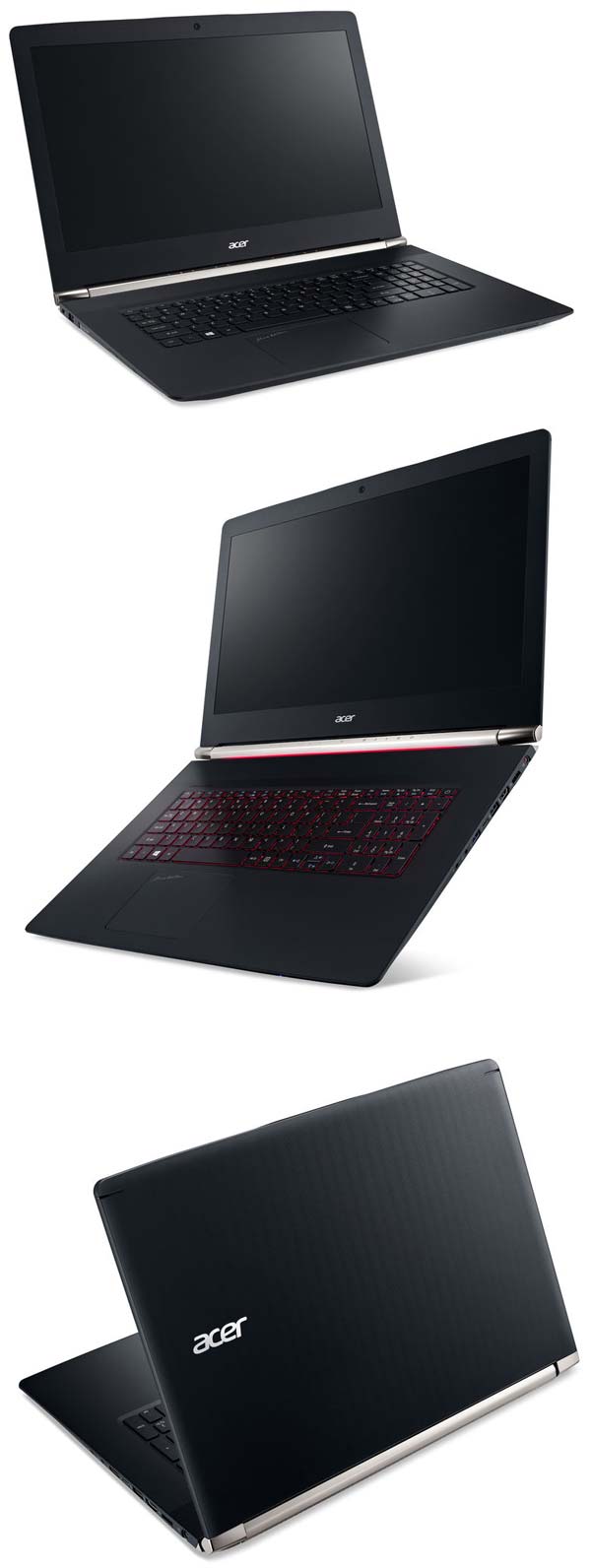 Впервые об обновлении семейства Aspire V17 мы услышали ещё в прошлом году, но теперь о новинке стало известно куда больше. Aspire V17 Nitro Black Edition получил 17.3" IPS экран с разрешением 1920x1080 и углами обзора 178 градусов. Основой решения стал процессор Intel Core i7-6700HQ, объём оперативной памяти DDR4 SO-DIMM равен 16ГБ, вдвое его можно расширить при желании. За вывод и обработку 3D графики отвечает видеокарта GeForce GTX 960M с 4ГБ памяти GDDR5.