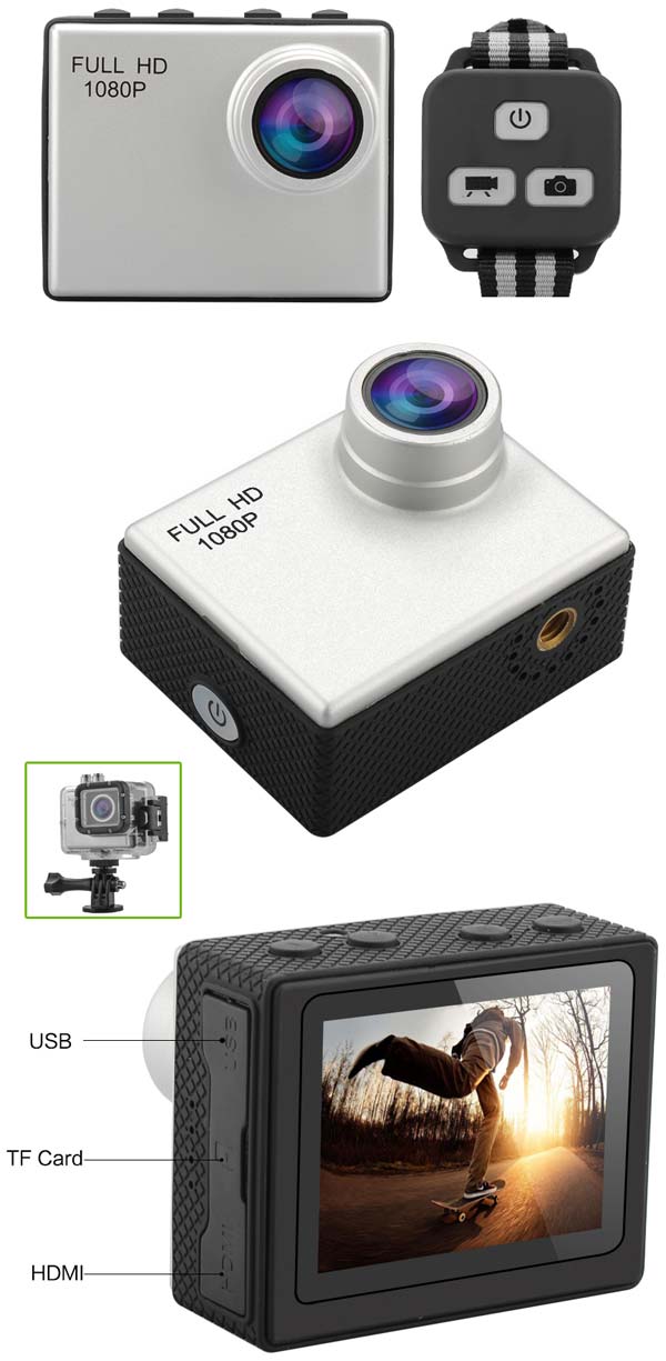 . Устройство обладает 12МП сенсором с 160° широкоугольным объективом, новинка может снимать видео в разрешении 1920x1080 при 30 кадрах в секунду, или же в 720p при 60FPS. Аппарат поддерживает 4-кратный зум, имеет пульт дистанционного управления и 2" ЖК экран.