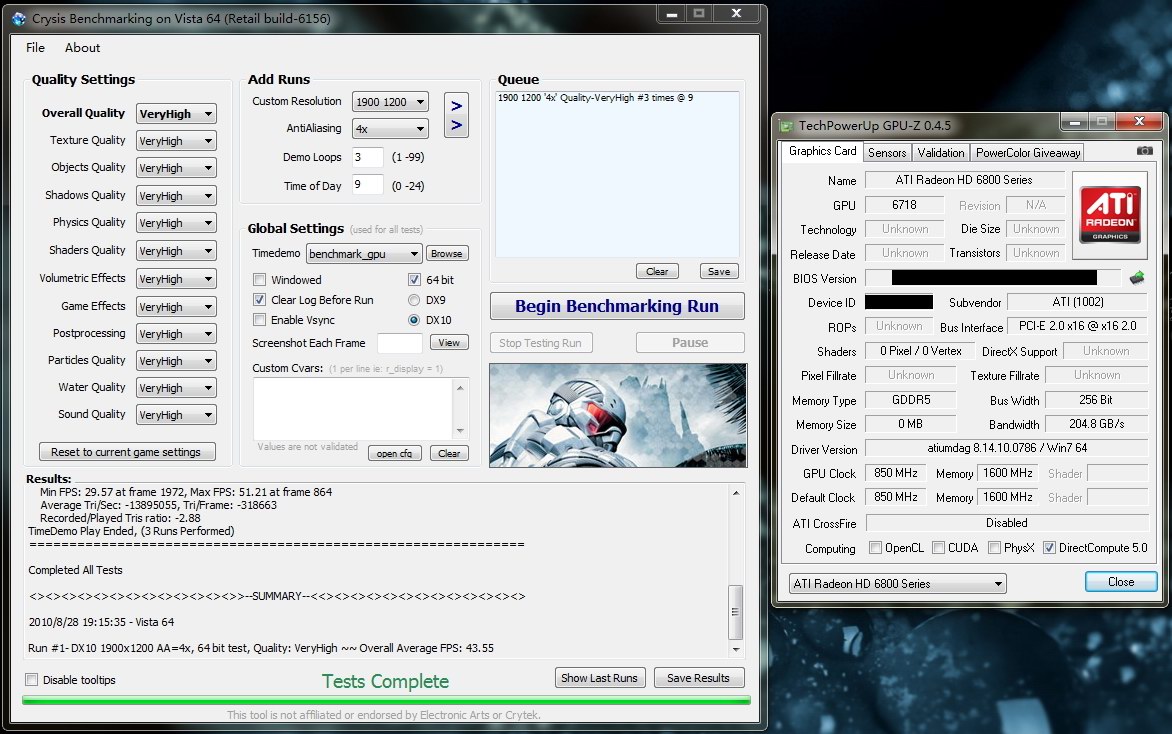Как и в прошлый раз, мы узнаем производительность Радеона 6870 (предположительно, хотя было бы здорово, если бы это были результаты 6850) в 3Dmark Vantage (но на пресете Performance, а не Xtreme), Crysis и Unigine Heaven.