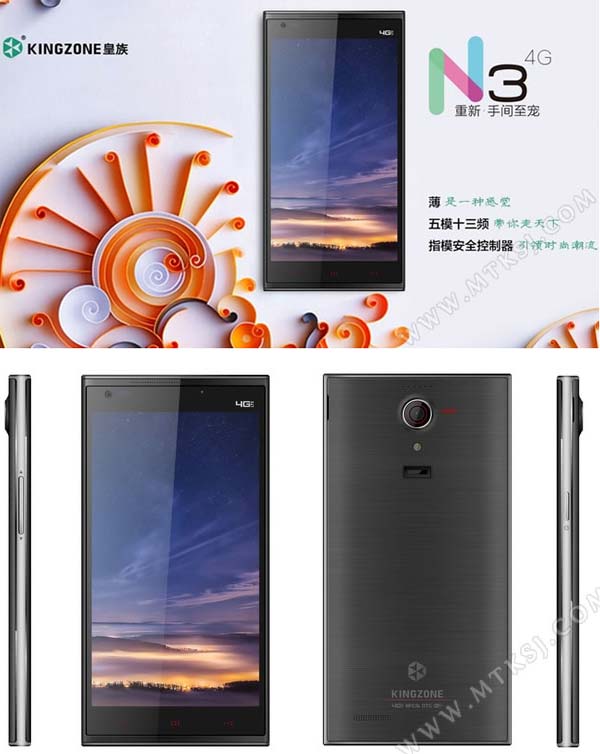 Новинка именуется Kingzone N3, она оснащена 4G решением MT6290 от MediaTek и SoC MT6582 от неё же. Диагональ экрана аппарата составляет 5", разрешение - 720p, тип экрана - LTPS с поддержкой Multi-touch. Объём оперативной памяти изделия - 1ГБ, места для файлов пользователя имеется 8ГБ. Тыловая камера 14МП, а фронтальная - 8МП. Управляется изделие Android 4.4 питается от батареи на 2500 мАч. Увы, пока это все доступные сведения о новинке.