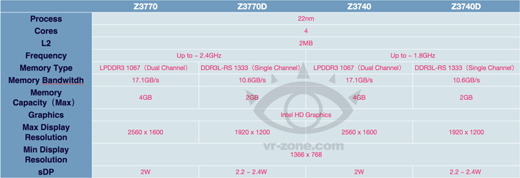 Китайское зеркало ресурса VR-Zone поделилось данными, касаемо спецификаций SoC Bay Trail-T.
