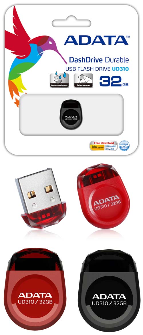Компания ADATA™ Technology, ведущий производитель высокопроизводительных модулей оперативной памяти DRAM и устройств хранения данных NAND Flash, анонсировала компактный влагозащищенный флэш-накопитель DashDrive™ Durable UD310, имеющий привлекательный дизайн в виде драгоценного камня. Благодаря установке вычислительного кристалла непосредственно на плате (техпроцесс Chip-on-board, (COB)) обеспечивается высокая устойчивость флэшки UD310 к воздействию воды и физическим нагрузкам. Под блестящим многогранным колпачком, похожим на драгоценный камень, скрывается невероятно компактный накопитель, практически не занимающий места при подключении к ноутбуку или лэптопу. Он позволяет без ограничений обмениваться музыкой, фотографиями и видео, что делает UD310 идеальным аксессуаром для использования с ультрабуками и другими тонкими портативными компьютерами. Флэш-накопитель UD310 доступен в вариантах на 8, 16 или 32 Гбайт в черном или красном цвете. Покупатели UD310 смогут бесплатно загрузить фирменное программное обеспечение UFDtoGO от ADATA – незаменимый в путешествиях инструмент для обновления и контроля своих личных данных. Доступность Флэш-накопитель DashDrive Durable UD310 можно приобрести у ряда авторизованных дистрибуторов на территории СНГ.