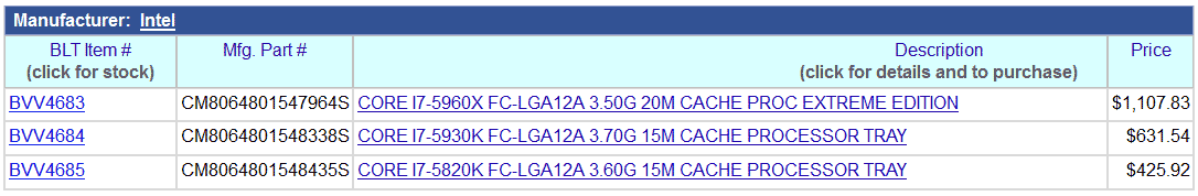 Коллеги с CPU World поделились сведениями, касаемо стоимости для предварительного заказа процессоров Haswell-E.