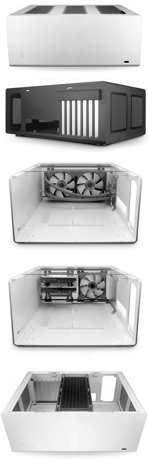 Аппарат именуется F12C, несмотря на его вполне щадящие размеры (440x320x184мм), новинка совместима с системными платами ATX, microATX и Mini-ITX. Сделано шасси из алюминия премиум качества (6063), толщина панелей составляет 4мм, вес конструкции - 4.4КГ.