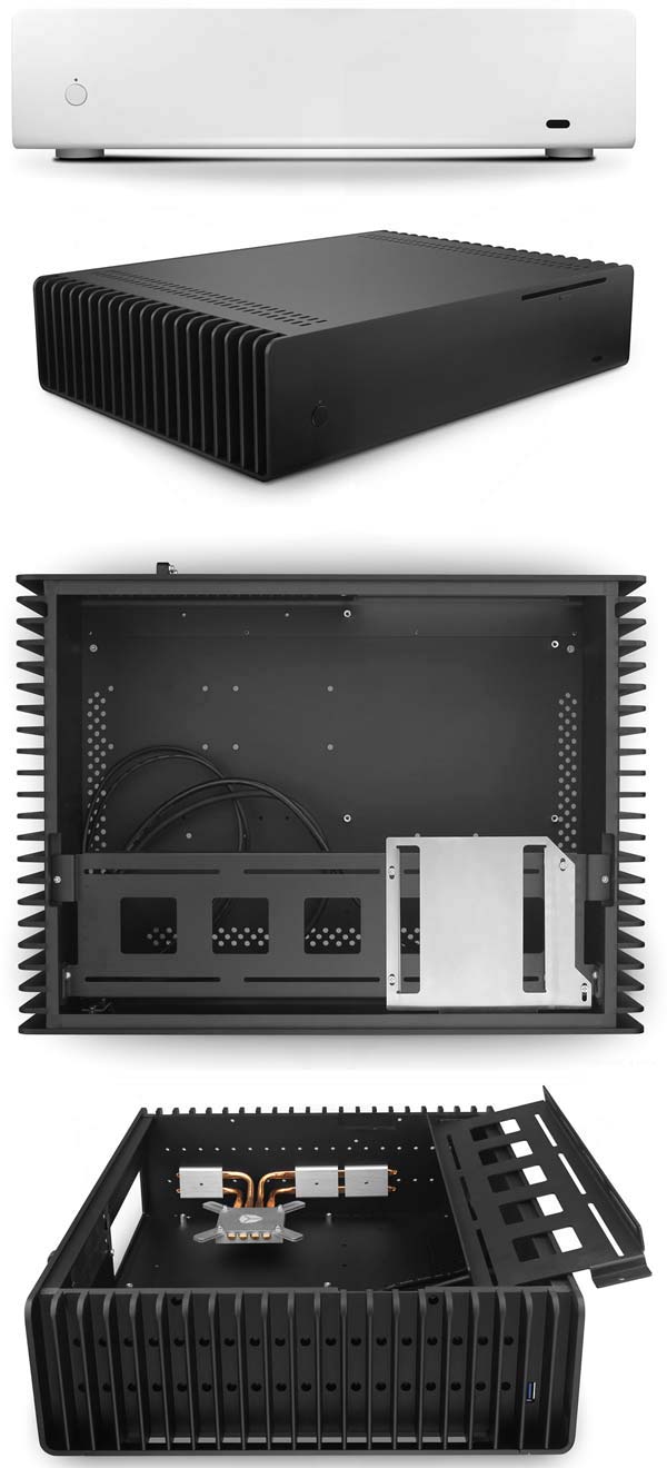 Устройство именуется FC10 Alpha, оно сделано из алюминия, толщина стенок равна 4мм, заявлена совместимость с материнскими платами форм-факторов microATX, Mini-ITX и ATX. Размеры новинки: 435x319x100мм, вес равен 5.4КГ. В аппарат поместится пять 3.5" и четыре 2.5" накопителя, есть вариант шасси с возможность установки оптического привода и без оного.