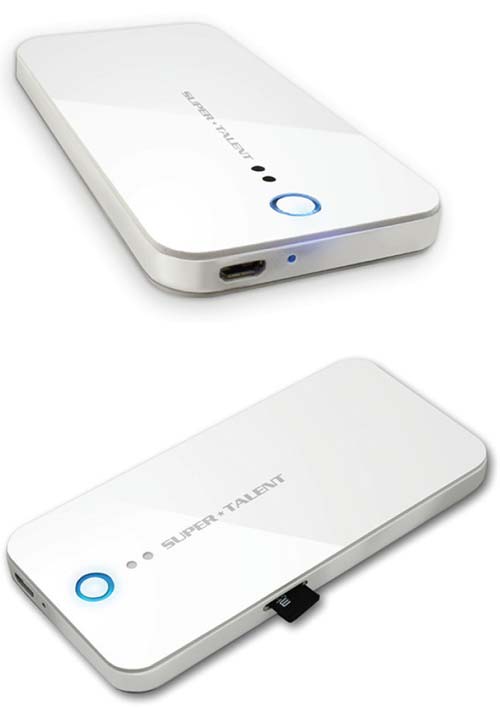 Новый продукт Super Talent представляет собой устройство, позволяющее раздавать содержимое карточек памяти по WiFi, изделие совместимо с microSD носителями, плюс имеет собственную память от 8 до 32ГБ, скорее всего используется недорогая флеш память.