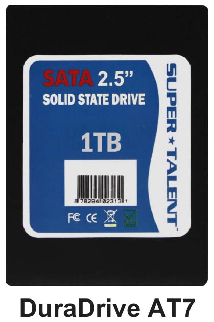 Семейство накопителей DuraDrive AT7 выполнено в форм-факторе 2.5", в них используется SLC/MLC флеш память, ёмкость решений составляет от 32ГБ до одного терабайта. Заявленная скорость чтения - 500МБ/с, а записи - 400МБ/с. Размер кеша зависит от ёмкости накопителя и может быть равным 128 - 500 мегабайтам.