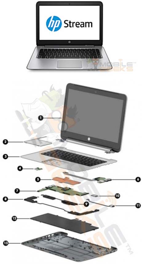 Аппарат HP Stream 14 основан на четырёхъядерном APU A4 Micro-6400T, работающем на тактовой частоте 1~1.6ГГц, имеющем графическое решение Radeon R3 и TDP в 4.5 ватта. Объём оперативной памяти равен двум гигабайтам, её тип - DDR3L-1333МГц, места для файлов пользователей выделено от 32 до 64ГБ, тип памяти - eMMC, при этом аппарат имеет порты SATA для подключения 2.5" накопителей.