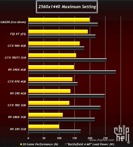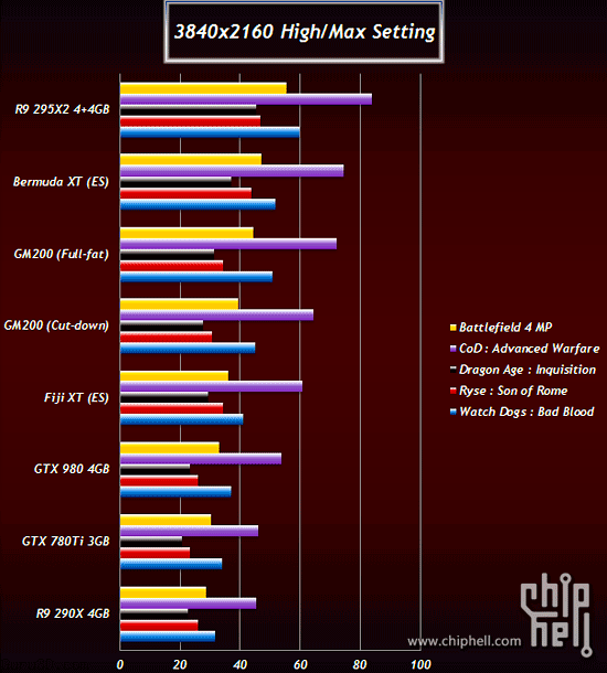 Как видно по графикам, решения на базе Fiji XT и Bermuda XT будут весьма шустры, последнее, по слухам, станет основой видеокарт серии Radeon R9 390. Согласно полученным сведениям, инженерный образец карты с Fiji XT на 10-15% быстрее GTX 980, в то время как обрезанная версия (cut-down version) карты на базе GM200 (а таковая не анонсирована, как известно) на 2-5% быстрее новинки от AMD. Мои коллеги с Guru3D считают весьма маловероятным, что результаты тестов подлинные, т.к. вряд ли у китайских камрадов оказались не вышедшие карточки и от AMD и от Nvidia, тем более с рабочими драйверами под них.