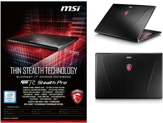 Аппараты именуются GS72 Stealth Pro (модели 6QE, 6QD и 6QC), они имеют в основе процессор Core i7-6700HQ, по два слота для оперативной памяти DDR4-2133, установить которой можно до 32 гигабайт. IPS экраны ноутбуков обладают диагональю 17.3" и разрешением Full HD или же UHD.