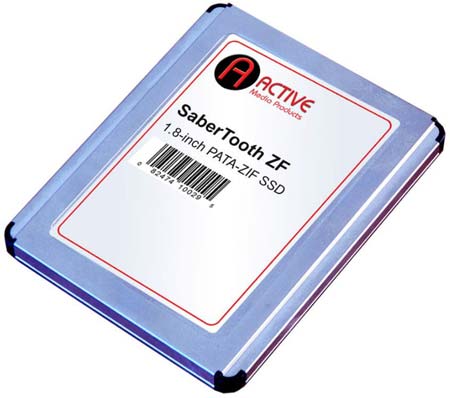 Новую линейку SSD назвали SaberTooth ZF, в их основе лежит IDE контроллер EastWho и MLC NAND флеш память. Типоразмер накопителей - 1.8". Заявленные скорости передачи данных - 130 и 75МБ/с (чтение и запись), это относится к 32 и 64ГБ моделям, старшая, 128ГБ несколько шустрее - 130 и 90МБ/с. Корпус новинок металлический, скорее всего алюминиевый, по его углам расположены предохраняющие от физических повреждений прокладки, сделанные из .. не указано из чего ![]()