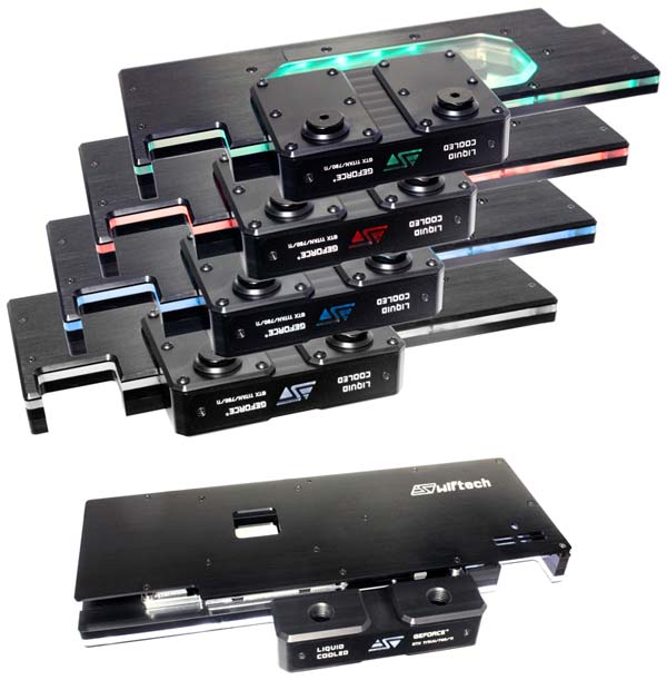 К этой категории относятся GTX Titan, Titan Black, GTX 780 и GTX 780 Ti, именно их предлагается охлаждать указанному Full Cover водоблоку. Жидкость будет циркулировать именно под/над (смотря как смотреть) нуждающимися в охлаждении частями видеокарты: графическим ядром, памятью и областью VRM. Водоблок Komodo-NV LE (Luxury Edition) доступен в четырёх цветах: зелёном, красном, синем или прозрачном.