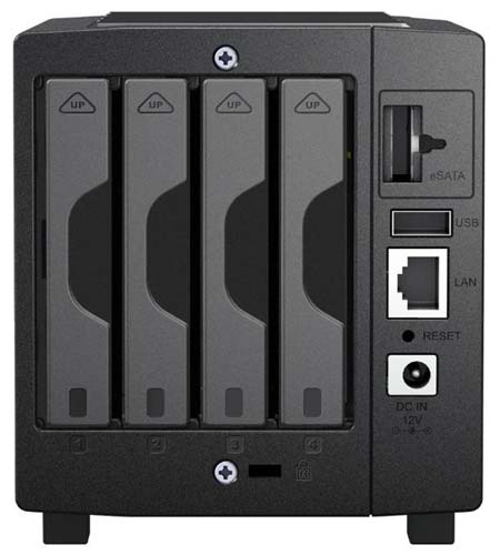Новые-то они, конечно, новые, но функционал - старый. DS411slim даёт доступ по сети (или же выступает в роли DLNA медиа-сервера) к записанным на вставленных в него 2.5" винчестерах или же SSD (общая ёмкость которых ограничена 4ТБ, что не мало, в принципе-то), данным. Внутри девайса трудится неясно какой процессор с тактовой частотой 1.6ГГц (наверное, это одна из моделей Intel Atom), 256МБ оперативной памяти DDR3. Для связи по сети используется гигабитный ethernet порт, а чтобы по-быстрому присоединить к новинке внешний винчестер или иное устройство, можно использовать eSATA или же USB 2.0, последних - две штуки.