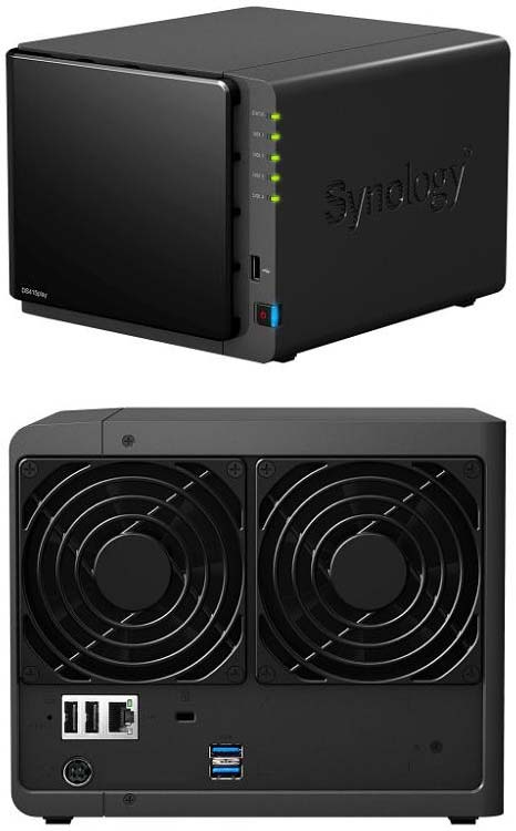 Размеры детища Synology составляют 165x203x233.2мм, вес равен 2.03 КГ без накопителей внутри. Сообщается, что новинка может декодировать видео в форматах H.264 (AVC), MPEG-4 Part 2, MPEG-2 и VC-1, а также о том, что количество портов USB 3.0 равно двум, а USB 2.0 - трём. Внутренние HDD/SSD используются с файловой системой EXT4, а внешние можно подключать с любой из следующих: EXT4, EXT3, FAT, NTFS, HFS+.