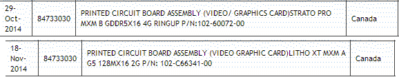 Какие устройства получат новые графические процессоры? В описании устройств присутствует сокращение MXM, это явно указывает на то, что продукты предназначены только для ноутбуков. В таблице базы можно увидеть, что новая графическая память появиться в двух вариантах - объёмом 4ГБ и 2ГБ, тип памяти - GDDR5.