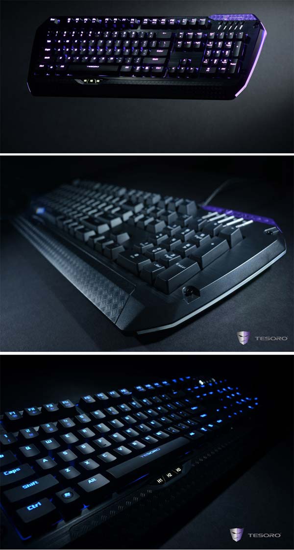 С помощью комплектного софта можно регулировать подсветку клавиатур производства Tesoro, графический интерфейс этого софта назван дружелюбным. С его же помощью можно запрограммировать клавиши новинки по своему вкусу, для каждого профиля - свои. На клавиатурах есть порты USB 2.0 (два) и аудио коннекторы для наушников и микрофона, плюс есть вход для адаптера питания для электросети, в комплект который не входит. Подставка новинок имеет резиновое основание, аппараты совместимы с Windows XP / Vista / 7 / 8.