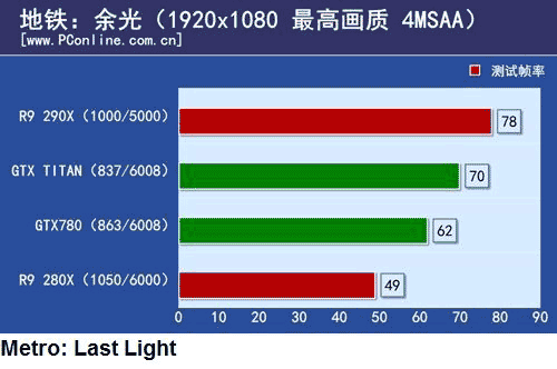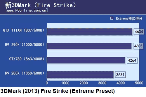Тесты стали доступны на китайском ресурсе PCOnline.com.cn, скриншоты оттуда не постеснялись взять мои западные коллеги, так что я решил от них не отставать. Судя по всему, жители страны Мао провели тестирование новейшей видеокарты Radeon R9 290X, причём не в гордом одиночестве, а вместе с её заклятыми врагами - GTX Titan и GTX 780 от Nvidia, также в тестах принимал участие R9 280X, подвергшийся ребрендингу и минимальным изменениями HD 7970 GHz Edition.