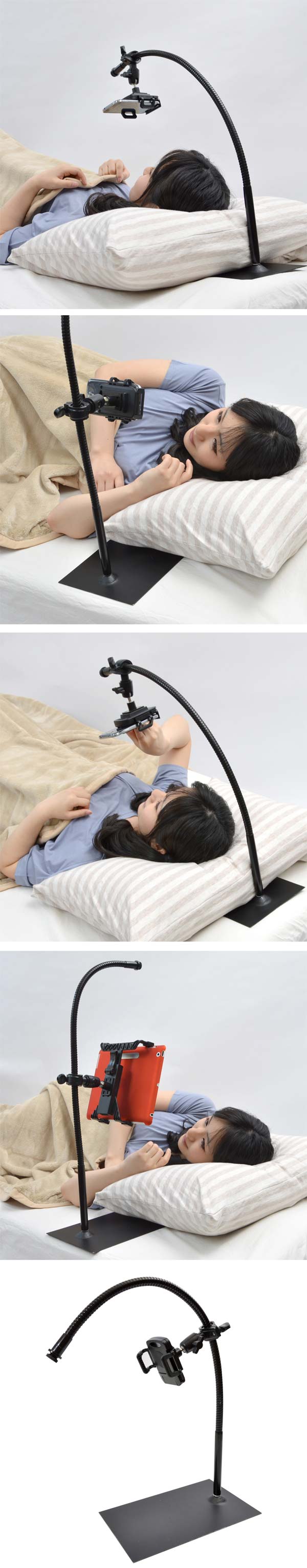 Достаточно закрепить аппарат на Gorone, лечь удобным образом, так чтобы экран был перед глазами, и дело в шляпе. Продукт Thanko имеет размеры 300x180x2мм, весит 1700 граммов. Аппарат может работать с 50~100мм смартфонами и 95~195мм планшетами.