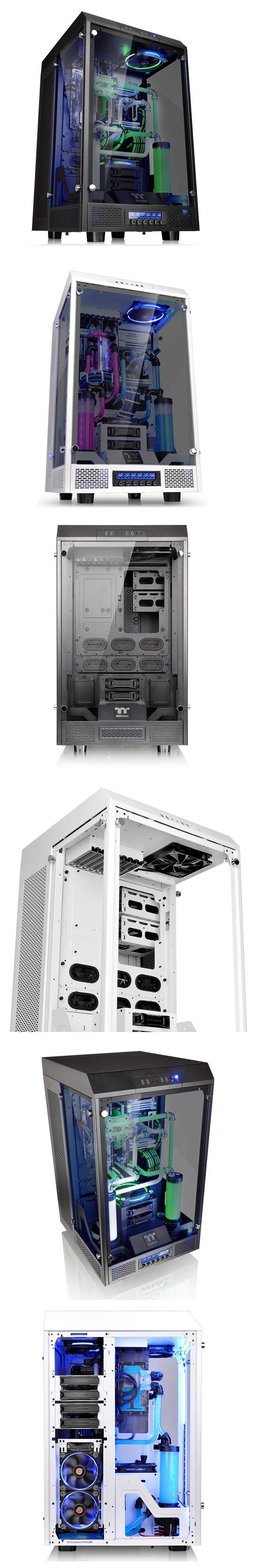 Новинка, по-сути, одна, но в двух цветах - чёрном и белом (Snow Edition). The Tower 900 является Full Tower корпусом, имеющим впечатляющие габариты 752x423x483мм, вес равен 24.5КГ, изделие создано из SGCC стали и закалённого стекла толщиной 5мм, оно применяется в боковых панелях. Совместимые форм-факторы материнских плат: ATX, E-ATX, microATX и Mini-ITX, количество слотов расширения равно восьми.