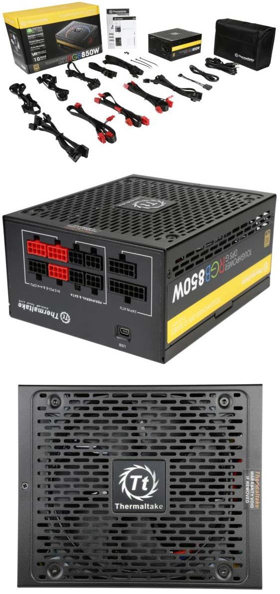 Серия называется Toughpower DPS G RGB Gold, изделия в неё входящие имеют мощность 650/750/850 ватт. Решения полностью модульного исполнения, в них используются японские конденсаторы, для охлаждения задействован 140мм тихий вентилятор с RGB подсветкой. Благодаря наличию некоего 32-разрядного блока микроконтроллера, можно программно мониторить состояние блока питания с мобильных устройств, где бы не находился владелец.