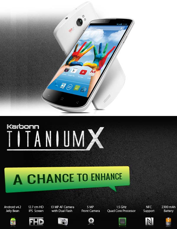 Питаться умный телефон Titanium X будет от батареи на 2300 мАч, а управляться Android 4.2. Есть информация о паре имеющихся камер - 13МП задней, она обладает двойной светодиодной вспышкой, а также 5МП фронтальной. Изделие Karbonn будет поддерживать NFC и это всё, что о нём известно.