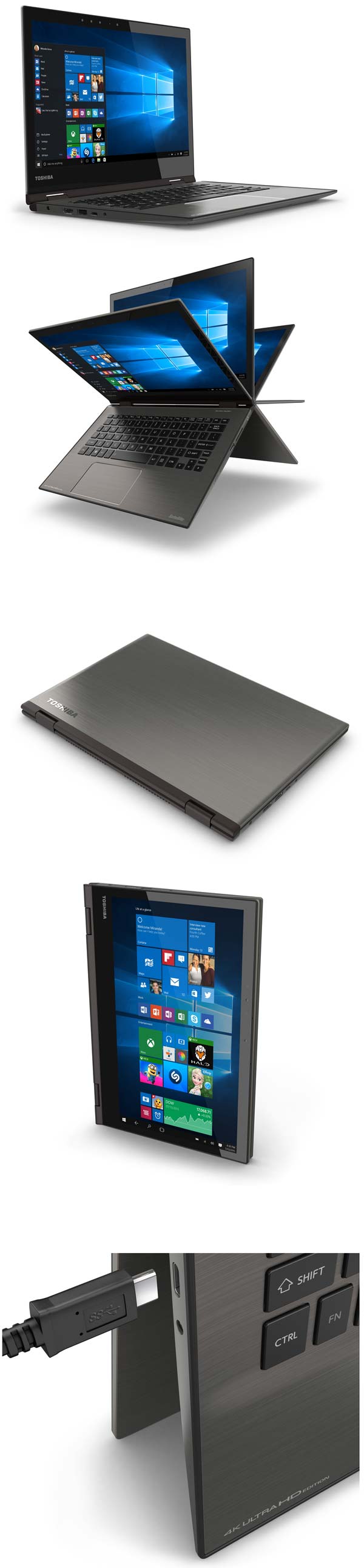 Устройство именуется Satellite Radius 12, может служить как ноутбуком, так и планшетом, 12.5" IPS экран решения имеет разрешение 4K/UHD, в качестве основы используется процессор Core 6-го поколения (Skylake), поддерживается идентификация пользователя посредством Windows Hello с помощью встроенной инфракрасной камеры.
