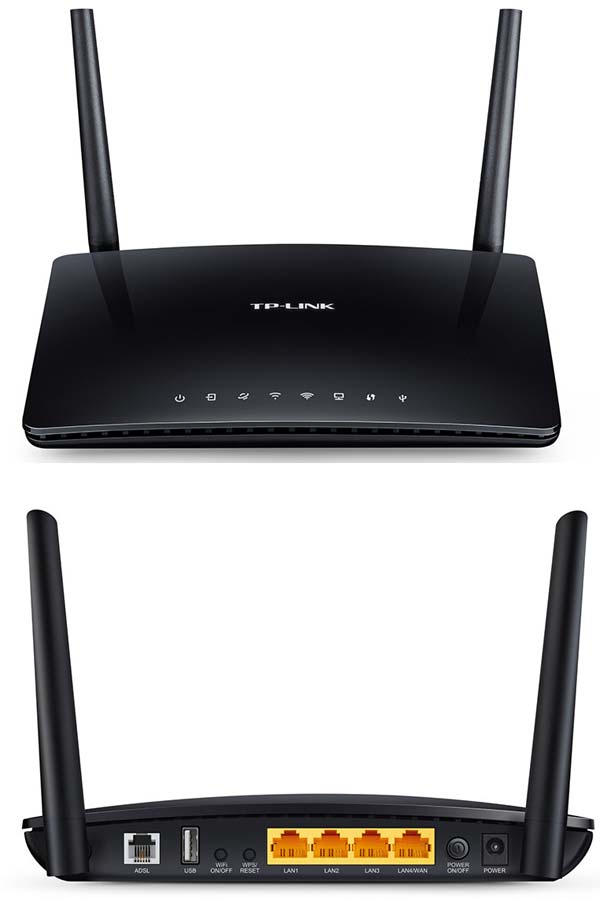 Новинка названа Archer D20, она является 802.11ac WiFi роутером, а также ADSL2+ модемом. Устройство демонстрирует скорость в 750Мб/с, работая в Dual-Band режиме (300Мб/с по 2.4ГГц и 433Мб/с по 5ГГц), имеет 2 внешних антенны, увы - несъёмных. Аппарат оснащён тремя LAN портами, одним LAN/WAN и одним ADSL портом.