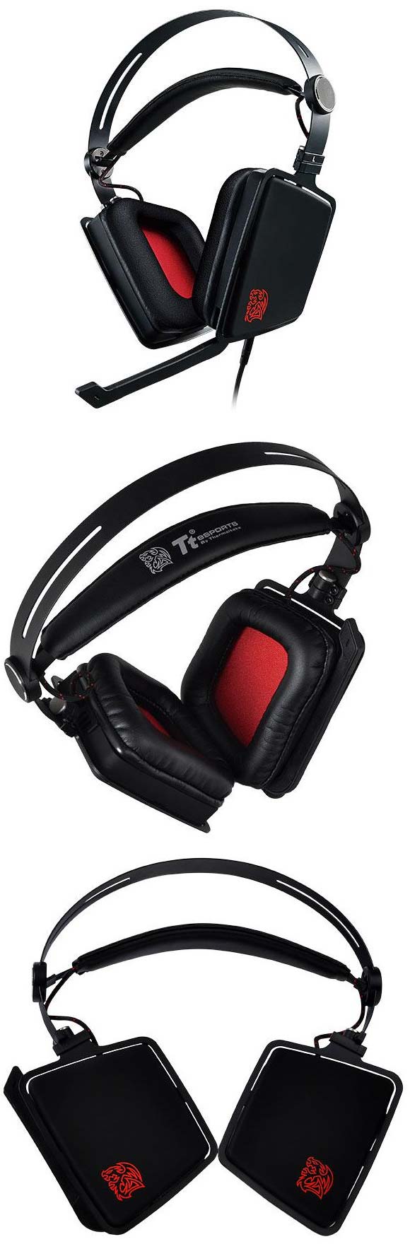 Изделие Tt eSPORTS имеет внешнее управление, да всенаправленный микрофон с функцией подавления шума. Чувствительность микрофона - -35 ± 3дБ, импеданс - 2.2К ом, а импеданс наушников - 32 ом. Цветовая гамма аппарата - чёрная с красным.