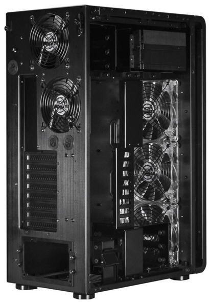 Ключевой особенностью данного шасси является (помимо странной формы) его превосходная продуваемость. В целях обеспечения максимально комфортной для компонентов ПК температуры, Lian Li потрудились установить в корпус пять вентиляторов - три 140мм в передней части (с LED подсветкой) и две "стодвадцатки" в задней. Скорость вентиляторов не указана, но идущий в комплекте с Tyr PC-X500FX реобас позволит настроить шум вертушек под ухо каждого пользователя.
