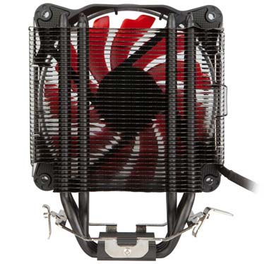 Вентилятор используется 120x120x25мм, он основан на подшипнике типа "втулка" (Fluid circulative bearing, по другим данным), обладает скоростью вращения лопастей от 600 до 2000 об/мин, гоняет до 59 кубических футов воздуха в минуту, издаёт шум на уровне 20~38 децибел, подключается по 4-пиновому коннектору, стартовое напряжение - 7 вольт.
