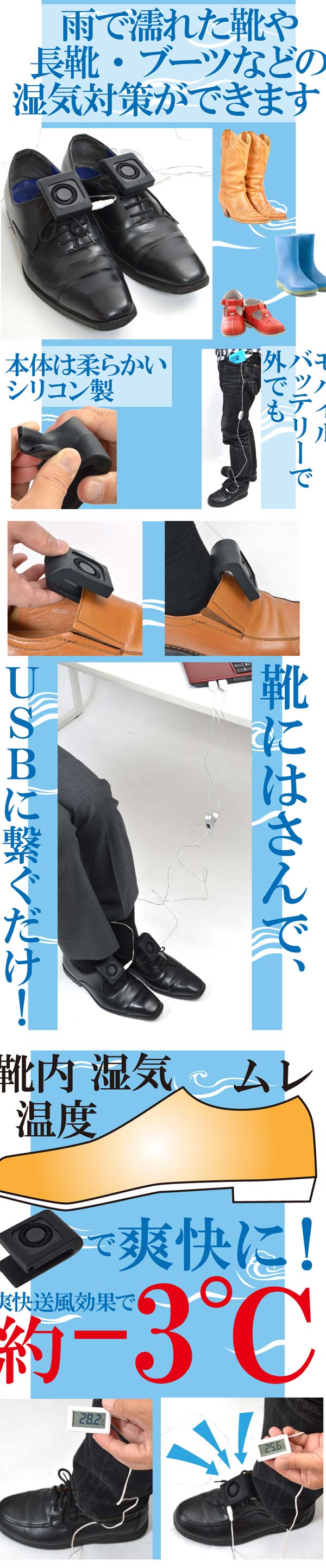 Новое японское изобретение называется USBSHS28, оно представляет собой систему охлаждения обуви и ног, на которых обувь носится. Извне с помощью вентилятора так называемого "турбинного" типа аппарат засасывает воздух, дабы затем подать его внутрь обуви, тем самым охладив ноги человека.