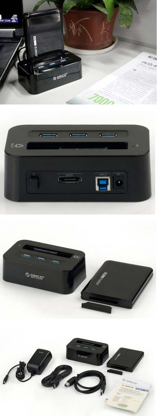 Девайс, именуемый XG-2518UE3H, позволяет принять в себя 2.5" твердотельный накопитель или винчестер, дабы пользователь мог получить доступ к данным на накопителе по USB 3.0. Также, в творении Orico есть eSATA порт и три USB 3.0 порта (используется чип VIA VL811). В пользе док-станций я недавно убедился на своём примере, когда писал обзор AgeStar 3UBT3, впрочем и USB 3.0 хаб - вещь нужная, в качестве примера могу привести опять же мой материал по AgeStar 3CH1.