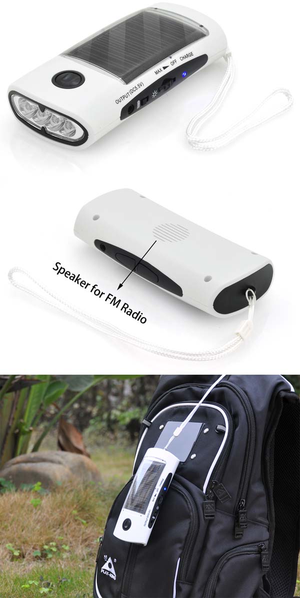 Аппарат получил имя CVADG-S75, он сочетает в себе функционал фонарика и FM радиоприёмника. Интересной особенностью девайса стала возможность подзарядки его от солнца, осуществляется это с помощью особых панелей, в народе известных как солнечные батареи.