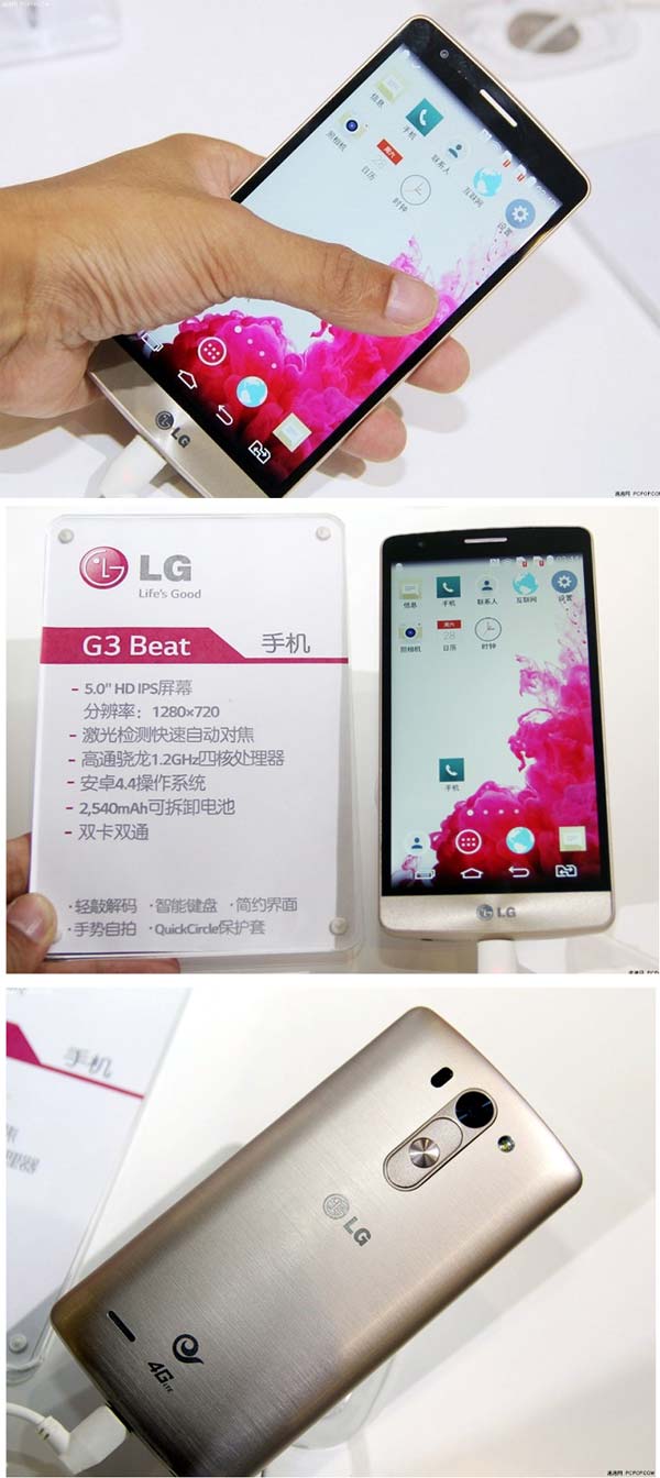 Модель аппарата - LG-D729, именуют его G3 Beat, хотя для других рынков он может быть представлен и как G3 mini, если верить слухам. Устройство имеет 5" IPS экран с разрешением 1280x720, 2ГБ оперативной памяти и 16ГБ флеш памяти, основой смартфона стала известная 1.2ГГц четырёхъядерная SoC Qualcomm Snapdragon 400.