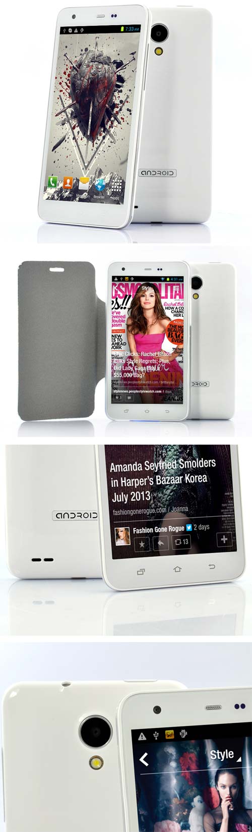 Умный телефон прозвали Corvus, кто его произвёл - не сообщается. У изделия Multi-touch экран с разрешением 854x480 и диагональю 5 дюймов, ввод поддерживается 5-точечный. В основе новинки четырёхъядерная SoC MTK6589 от MediaTek, 1ГБ оперативной памяти и 4ГБ места во флеш памяти, расширить которую можно карточками памяти microSD/SDHC.