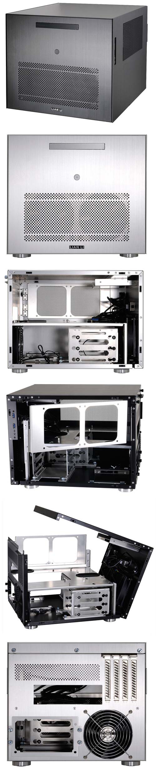 У новинки от Lian Li четыре слота расширения, система охлаждения шасси состоит из трёх 120мм вентиляторов - два находятся на фронтальной стенке корпуса, а один установлен сзади. На панели ввода/вывода имеются два порта USB 3.0, а также аудио вход для микрофона и выход на наушники. Доступные цвета алюминиевой коробочки - чёрный и серебристый. Сообщается, что в PC-V358 влезет видеокарта длиной до 330мм, о допустимой высоте процессорного кулера информации нет.