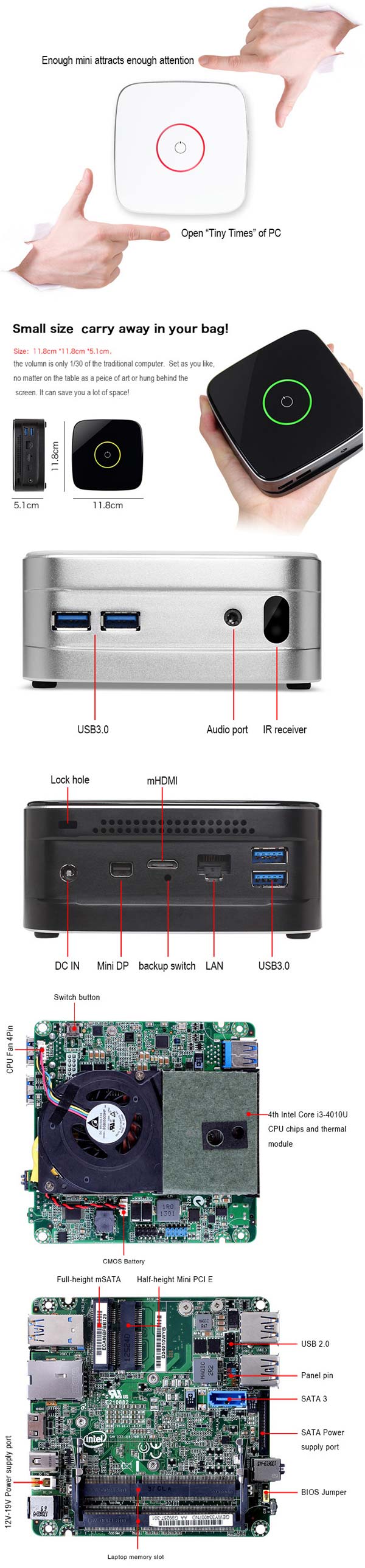 Им стал мини-ПК Mr.NUC V6 на основе Intel NUC, говоря более конкретно - платы D34010WYB. Устройство использует двухъядерный процессор Core i3-4010U, имеет размеры 118x118x51мм, весит 2КГ. Корпус аппарата может быть красного, белого или же чёрного цветов, сделан он из алюминия.