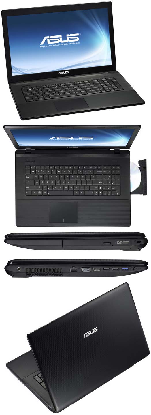 Аппарат имеет 17.3" экран с разрешением 1600x900, его подсветка светодиодная, а соотношение сторон - 16:9. Чтение и запись DVD/CD возможна благодаря встроенному дисководу. Ноутбук от ASUS имеет один порт USB 3.0, два USB 2.0, видеовыходы HDMI и D-Sub/VGA, картридер (SD/SDHC/SDXC), стерео-динамики, микрофон и 3.5мм аудиовыход.