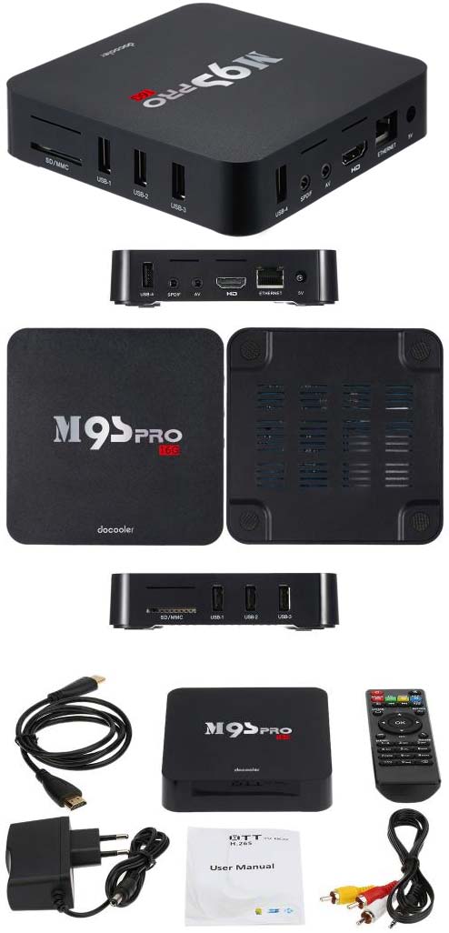 Устройство Docooler M9S-PRO обладает размерами 115x115x25мм, весит 234 грамма. В основе мини-ПК 4-ядерная 2ГГц SoC Amlogic S905 с графикой Mali-450. Объём оперативной памяти и флеш памяти различается у двух доступных для приобретения моделей - в первом случае аппарат имеет 2ГБ оперативной памяти и 16ГБ флеш памяти, во втором случае - 3ГБ и 16ГБ, расширение возможно и так и сяк.