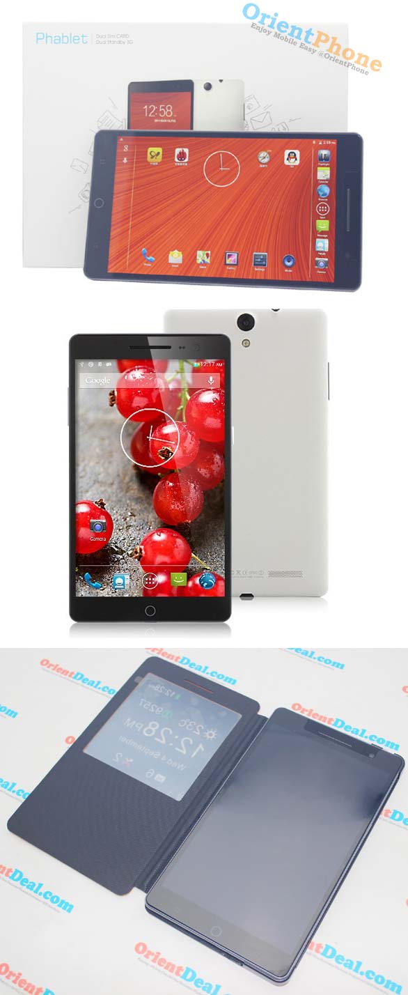 Устройство именуется OrientPhone Mega Pro 7.0 и по мнению магазина-продавца является фаблетом, я склонен не согласиться, ибо диагональ экрана аппарата составляет 7 дюймов, значит это уже планшет, но с функциями смартфона. Дисплея изделия более чем приличный, он IPS типа и имеет разрешение 1920x1200, полностью ламинирован.
