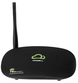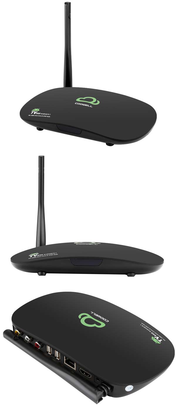 Аппарат называется COOWELL V3, он имеет размеры 182x126x34мм, весит 187 граммов, корпус мини-ПК сделан из пластика чёрного цвета. Основой решения стала 8-ядерная SoC Rockchip RK3368 с графикой PowerVR G6110, тактовая частота процессорных ядер составляет 1.5ГГц, объём оперативной памяти равен двум гигабайтам, флеш памяти в наличии 16 гигабайт, расширение возможно на 64ГБ с помощью карточек microSD/HC/XC.