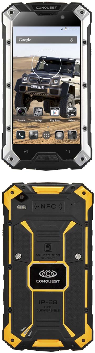 Управляется новинка Android 4.4, работает в сетях GSM, WCDMA и TDD-LTE/FDD-LTE, дружит с GPS, NFC, WiFi, Bluetooth, ловит FM радио. Питается смартфон Conquest S6 Plus от батареи на 4000 мАч, имеет акселерометр, g-сенсор, светосенсор и датчик приближения. Корпус аппарата позволяет осуществлять безбоязненное погружение девайса в воду на 30 минут (до 1 метра), имеется сертификат IP68.