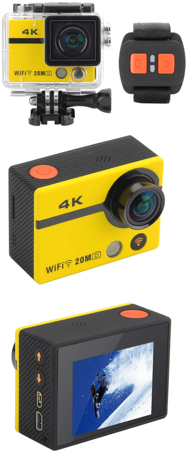В общем и целом, устройство неплохое, если забыть про низкий фреймрейт при съёмке в разрешении 4K. Аппарат обладает 8-кратным цифровым зумом, питается от съёмной литий-ионной батареи на 1050 мАч, работает от которой до 2.5 часов, а заряжается за 3 часа. Объектив камеры 170° широкоугольный, в комплекте с изделием, помимо кучи креплений и корпуса для подводной (глубина до 50 метров) съёмки, есть пульт дистанционного управления, работающий на частоте 2.4ГГц и действующий на 10 метров (или 3 метра под водой).