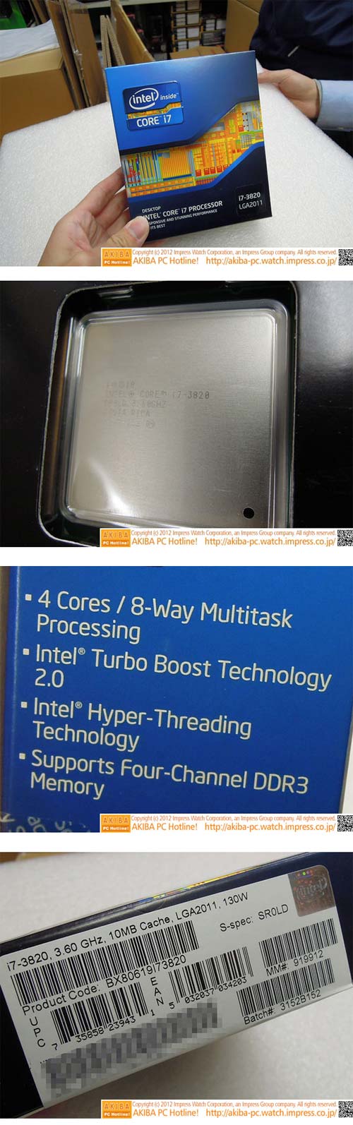 Японцы вновь имеют возможность пощупать новинки раньше прочих жителей планеты Земля. На этот раз жители страны Восходящего Солнца осматривают появившийся у них в продаже младший Sandy Bridge-E в лице Core i7-3820.