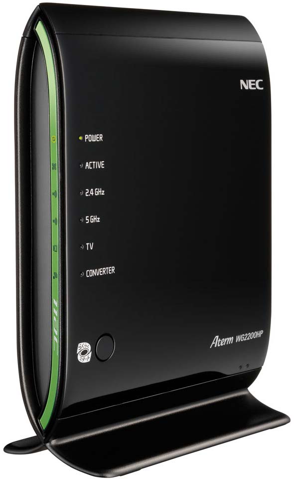 Новинка получила имя Aterm WG2200HP, она является Dual-Band устройством, т.е. работает одновременно на частотах 2.4 и 5ГГц, обеспечивая поддержку 802.11a/b/g/n/ac WiFi. Скорость передачи данных может достигать 1733Мб/с по 5ГГц и 450МБ/с по 2.4ГГц.