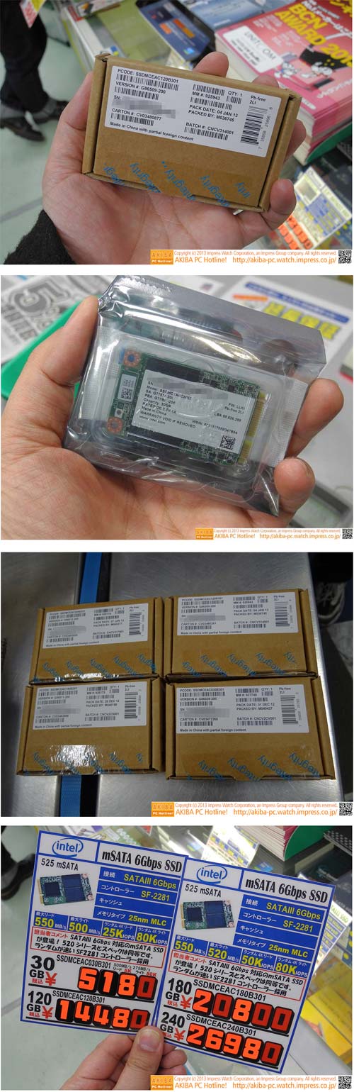 Японский сайт PC Watch опубликовал фотографии поступивших в продажу SSD 525 серии от Intel.